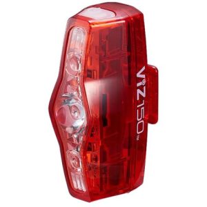 Pumping out an attention-grabbing 300 lumens with OptiCube™ lens technology, the versatile ViZ300 stands out with the power of Daytime Hyperflash™ mode and the friendliness of Group Ride mode. Specification 3 x LED (300 Lumens). Dimension: 25 x 75.5 x 34 mm. Weight: 47g (with batteries). Light source:Red LED X3. Battery:Li-ion rechargeable battery. Mount size:φ21.5-32mm. Fits up to 130mm outer circumference. (SP-15). Water resistant: IPX4. Other: Battery auto save, Low battery indicator, Light mode memory. Runtime Runtime:Constant (30 lumens): 5hrs. Flashing: (30 lumens): 45hrs. Group Ride (15 lumens): 10hrs. Daytime HyperFlash (300 lumens): 10hrs. Recharge time: 3hrs (0.5A).